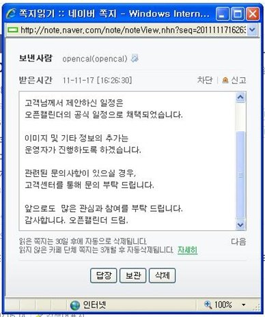 1. 네이버 오픈캘린더에서 답변이 왔어요!