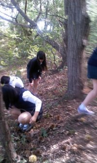 학교 뒷산에서 밤을 주우러 댕김