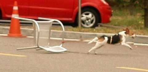비글이 철제의자 매달고 폭주하기 시작
