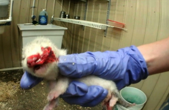 [직원1]이 페럿의 장기들을 최소 1분동안 여러번 잡아당기는것을 보았고, 갓 젖을뗀 새끼는 고통에 아파하며 소지지르고,