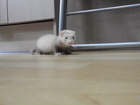 거의 4주 정도 된 페럿들을 돌보고 있을때, 한마리의 페럿이 한마리의 새끼페럿과 함께 갖혀있는걸 볼 수 있었습니다.