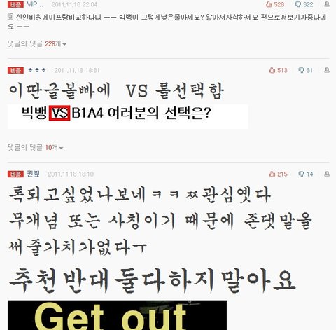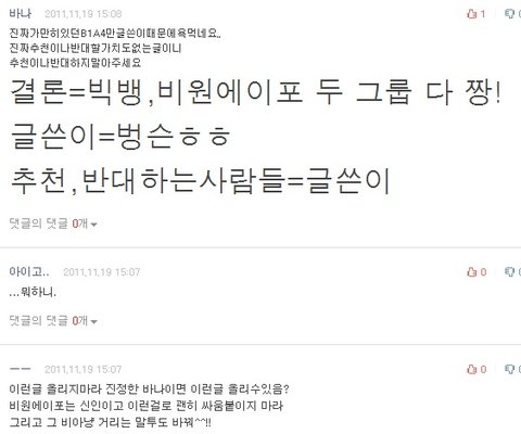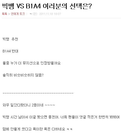 B1A4가 그렇게 좋으시면 B1A4를 추천으로 올려놓으시지, 왜 빅뱅으로 올려놨어요?