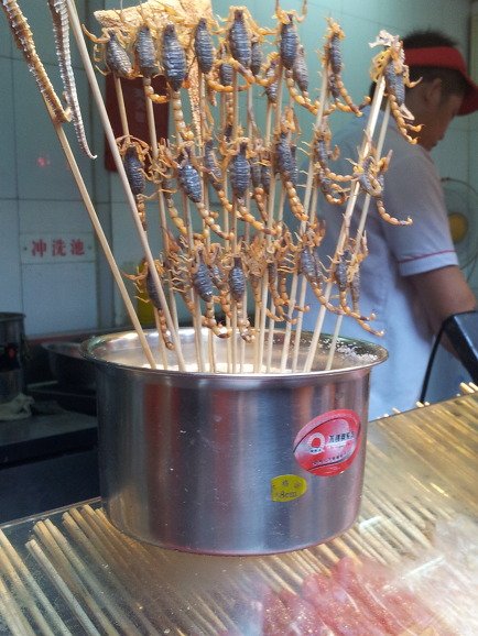 전갈님 입니다. 3마리 꼬챙이에 우리나라 돈 4천원 정도.