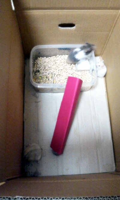 상자 두개를 겹쳐 넣으니까 빈 공간이 생겼길래 애들 물고다니는 짱쥐♥를 독방에 넣었음ㅎㅎ