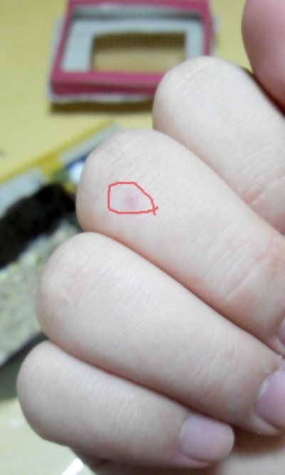 이빨 자국이 커보이는데 실상은 엄청 조그만데 주위가 빨갛게 달아올라 커보이는 것 뿐임!!