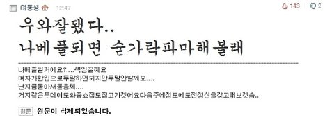 막이딴거쓰지마셈우리기분도생각해주삼...난베플인증하기위해서도전을한거기때문에...