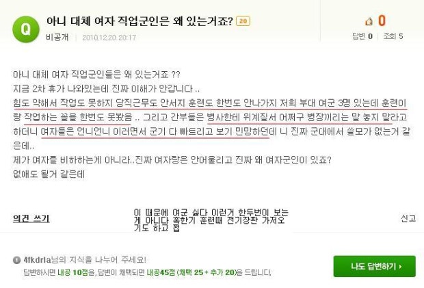여자도 군대 보내야 된다고 주장하는 남자는 소수 일뿐 입니다