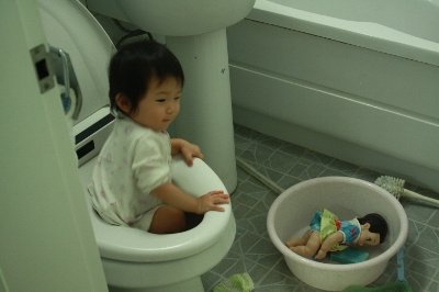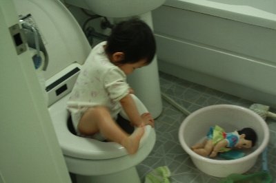 화장실 변기 안에 들어가서 좌욕을 하고 있는거 아니겠음??