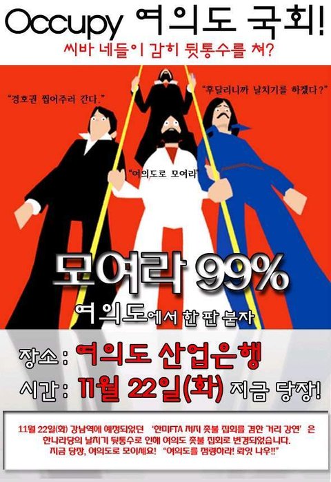뭔가 여러번 들어보셨을 "나꼼수"멤버들이 여의도에서 시위한다고 모이라고 하셨다네요.