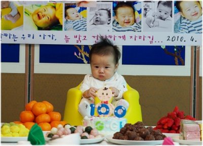 100일 잔치하는데 사람많아서 표정이 좋지않음 ![]()