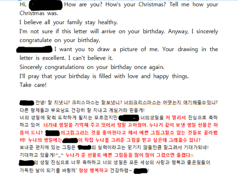 "이 편지가 네 생일에 도착할 지는 모르겠지만