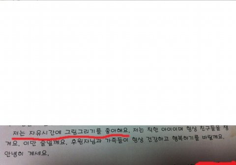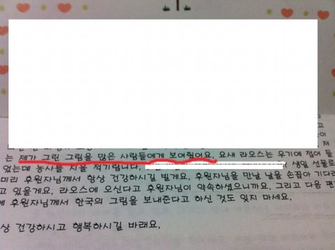 아동에게서 잘받았다는 편지를 받기는했지만