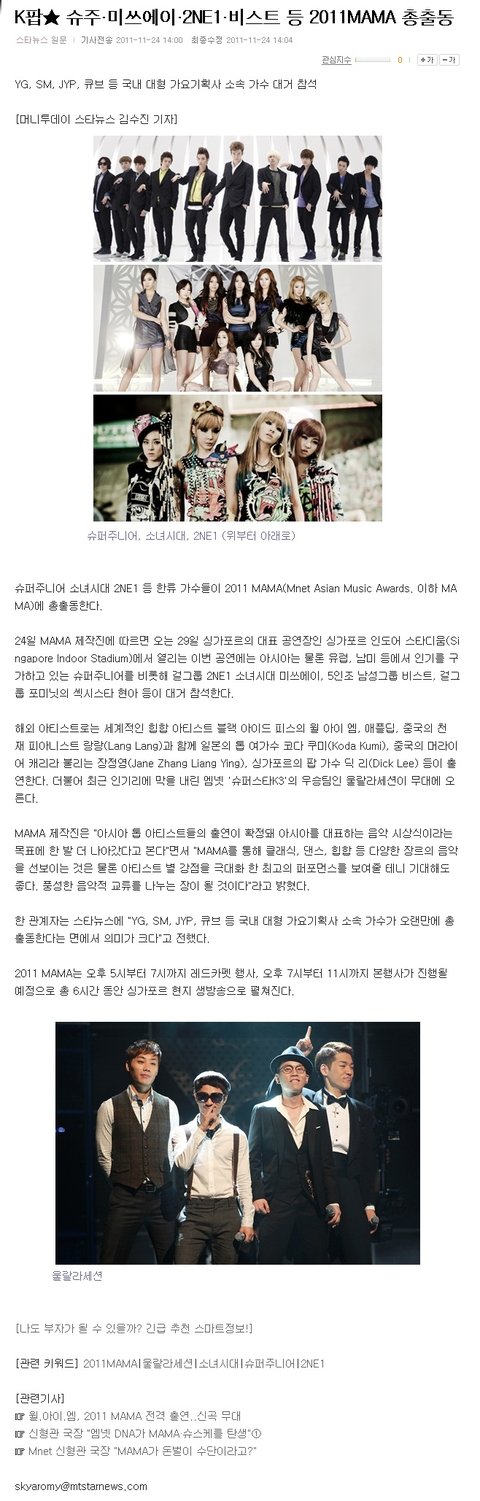 Mnet 2011 MAMA, 미친 존재감의 가수 출연자 정보~!! (소녀시대 윌아이엠 등)