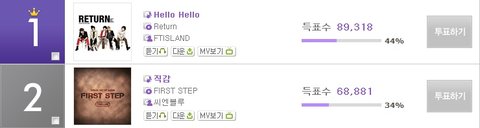 투표결과를 보시면 씨엔블루과 에프티아일랜드의 표차이는 20000이 이상차이가납니다, 10%가차이나죠.