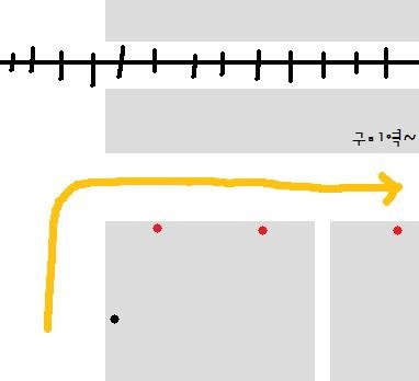 본인같은경우는 사람별로없는 정류장(검정점)까지 걸어가서탐.