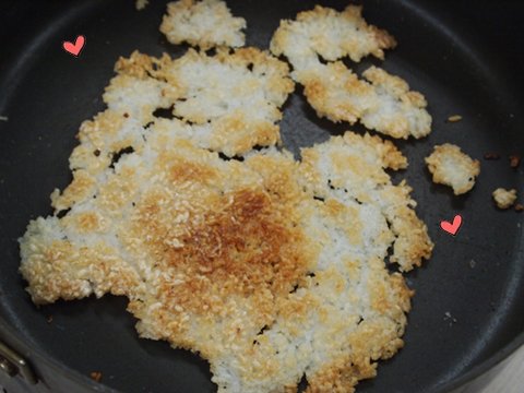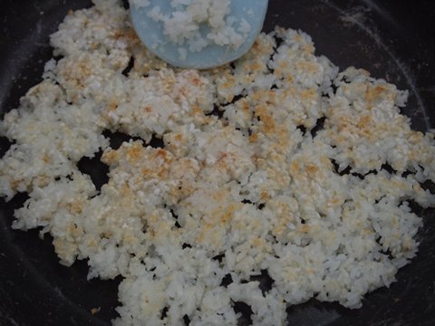 꾸벅꾸벅 졸면서 본격적으로 누룽지를 부치기 시작했어용!!!!