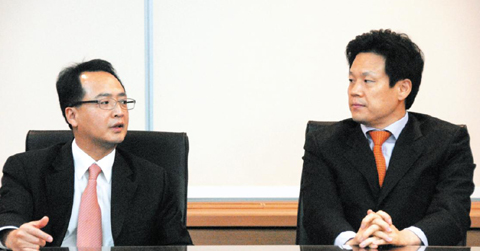 ▲ 이색 경력을 가진 최석원 한화증권 리서치센터장(왼쪽)과 신남석 동양종금증권 리서치센터장이 바라본 2012년 주식시장은 어두우면서도 밝았다. 이들은 유럽발 정치 갈등에 따른 변동성이 계속되겠지만, 최악의 상황을 벗어나게 되면 시중에 풀려 있는 현금이 증시로 유입돼 연말에는 코스피지수가 2300~2400까지 상승할 수 있다고 전망했다. / 한화증권 제공 ◇"내년 코스피 1700~2300대 박스권"두 센터장이 유럽 재정 위기를 바라보는 시각은 냉정했다. 신 센터장은 "그리스 디폴트(채무 불이행)는 시간문제로 확률이 99%"라고 했고, 최 센터장은 "채권시장에서 그리스는 이미 디폴트로 인식된다"고 했다. 최근 EU(유럽연합)가 재정 통합을 위한 유로본드 발행을 논의 중인 것도 "독일이 원치 않아 실현 가능성이 별로 없다"고 잘라 말했다.