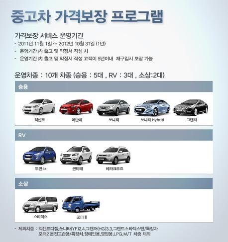 프로그램이 운영되는 기간 동안 아반떼, 쏘나타(하이브리드 포함), 투싼, 포터 등
