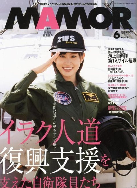 자위대 선전 잡지에 표지모델로 출연.