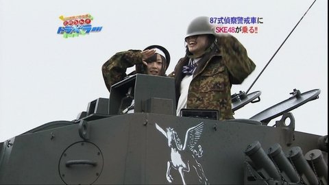 모 프로그램에서 자위대 87전차에 탑승하면서 경례함.