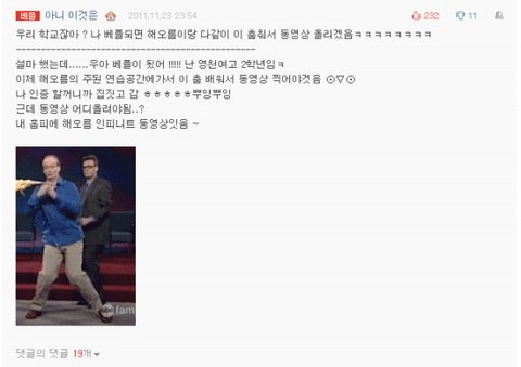 제가 베플되면 이춤을 해오름과 함께 춰서 동영상 올리겠다고 했었음