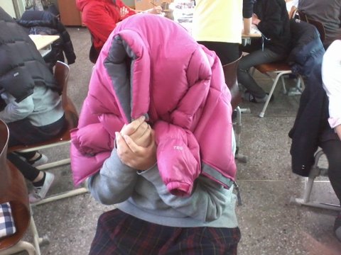 이렇게머리를열심히꼰다음 반에한명씩있는 일찐들에게저벅저벅가서 야패딩좀ㅡㅡ...............구라고요..ㅎ그냥 패딩입고있는 애껄 뺏어오세요!!!이렇게 일찐이되가는거야!!!!!!!!김꽃뚜레처럼!!하이야야 !!!!!!!!!!