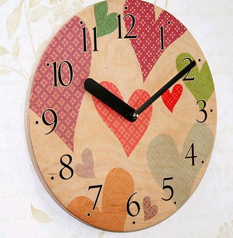 하트모양이 예쁘게 그려진 자작나무 벽시계라네용?ㅋ