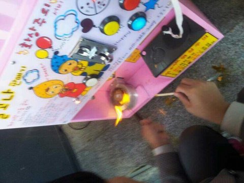 ㅋㅋㅋㅋㅋㅋㅋㅋㅋㅋㅋㅋㅋㅋㅋㅋㅋㅋㅋㅋ맞음 바로그 초등학교앞에 많다는 달고나만들기 기계... 내가 초딩땐 200언이었는데 지금 500언임 생각보다 비쌋지만 우린 만들어먹기로 했음 ㅋㅋㅋㅋㅋㅋㅋㅋㅋㅋㅋㅋ 저기 가운데위에 자세히 보면 보통, 많음, 곱배기 라고 써잇음 바로 설탕의 양임 ㅋㅋㅋㅋㅋㅋㅋㅋ 오백언 동전을넣고 두구두구두구,,,,, 곱배기가 뙇!!! 기뻐 날뛰는데 옆에서 초딩들의 시선....