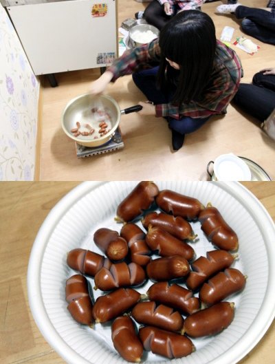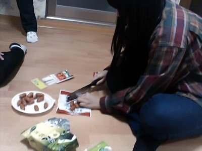 몽키1호가 소세지에 칼집을 내고 있음. 도마가 없어서 저 비닐에... 눈물없인 볼 수 음슴..![]()