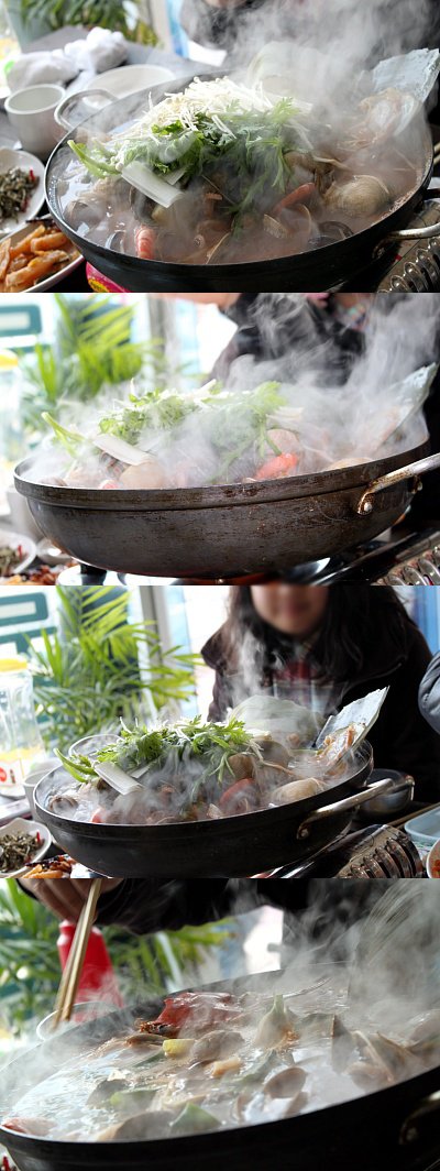 여기부턴 해물탕 사진. 몽키2호의 흐뭇한 웃음도 나옴