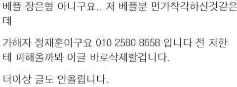 하ㅡ 진짜 묻히면 안되는데.. http://pann.nate.com/talk/313628036 여기 댓글에 장은형으로 추정되는 인물이 쓴 글을 캡혀한 게 있는데 그걸보니 너무 걱정되네요.... 진짜 장은형이 글쓴이학생 잡아서 폭행하고 있으면 어떡하죠....ㅠㅠ