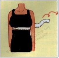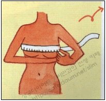 두 팔을 자연스럽게 내린 다음 가슴 바로 아래를 잰다.