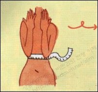 오른쪽 팔의 어깨부터 팔꿈치까지의 중간지점을 잰다.