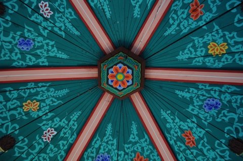 가다가 정자에서 앉아 쉬려고하는데 천장이 너무 이 ~뻐~ 무늬가 잘빠졌어~