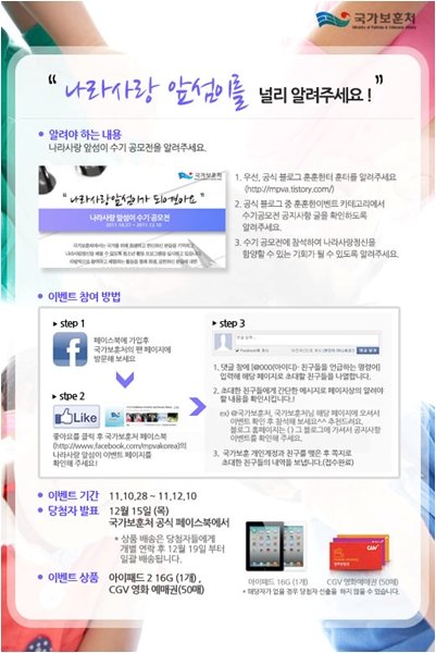 여기서 잠시 국가보훈처가 진행하고 있는 나라사랑앞섬이 관련 이벤트 이야기를 해볼까 합니다.