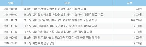 인출조건: 3천포인트부터는 도토리, 5천포인트부터는 상품권, 1만포인트부터는 현금 교환 가능