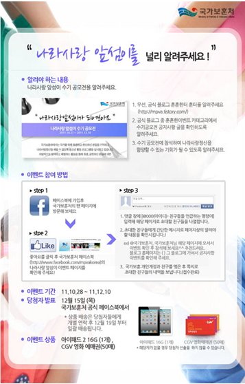 지금 국가보훈처 페이스북, 트위터에서는 [나라사랑앞섬이 이벤트]가