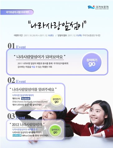 ‘나라사랑앞섬이’의 이벤트를 찾아 친구들에게 알리기와 새로운 이름 짓기가 진행 중이래요