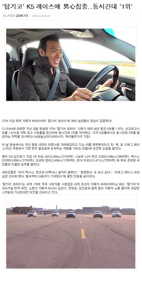 국내 차와 벤츠와의 비교를 통해서 동시간대 1위를 한 탑기코!!!!![]()