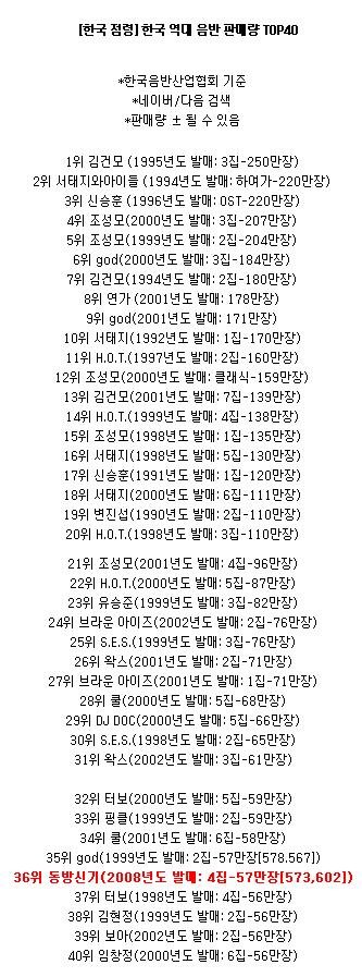 동방신기, 슈퍼주니어는 ...... 솔직히 음반판매량으로 어떻게 할 수가 없다.. 너무 쌔....