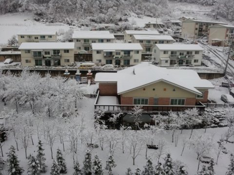 1교시가 끝난후부터 급작스럽게 눈발이 펄펄 날리기 시작함