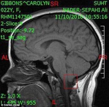 캐롤라인 기븐스(23)는 소뇌의 일부분이 비대해져 돌출되면서,