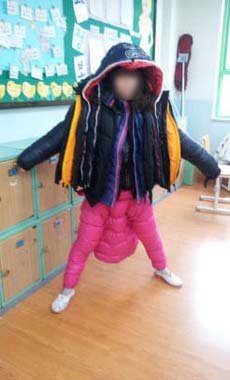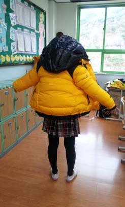 생각햇지만우리반에서제일체구가작은애가입어서걱정없..이..뭐 껴넣으면들어가겟지하고