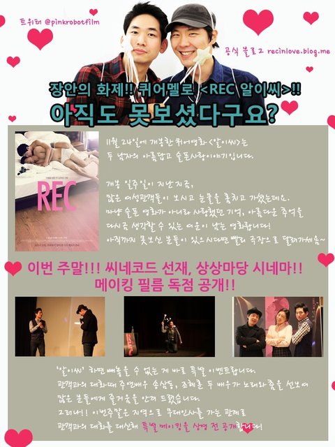 GV정보도 나와있고! 트위터 @pinkrobotfilm 팔로우하면 알이씨 관련 정보를 마구마구 얻을수 있음
