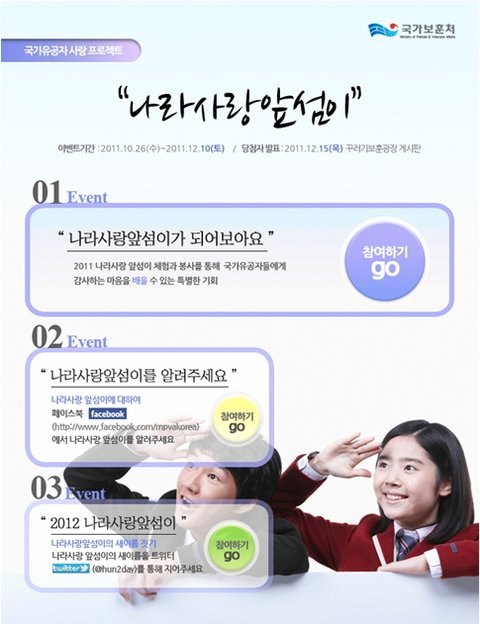 바로, 국가보훈처에서 진행하는 ‘나라사랑앞섬이’ 라는 프로젝트라고 합니다.