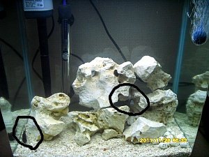 저의 "시클리드"열대어 어항이요 동그라미 친곳이