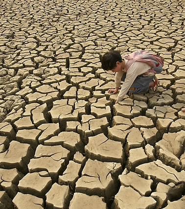 또다른 반대쪽에서는 심각한 가뭄으로 인해 땅이 갈라집니다.