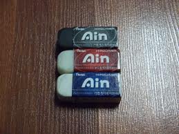 아인지우개의 생산지는 일본입니다 색은 빨강/파랑/검정 입니다
