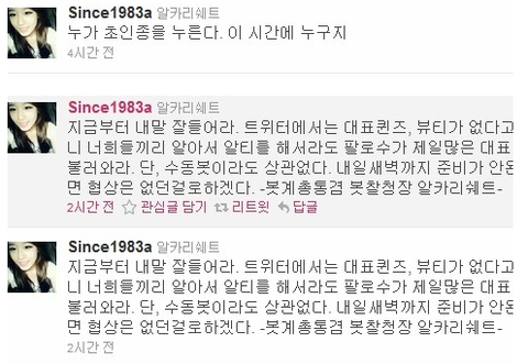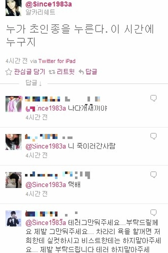 그런데 이번에는 모든 멤버들의 트위터를 테러한다더군요...