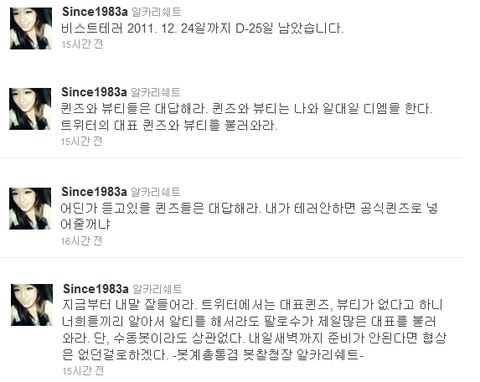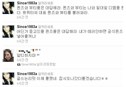 "'내가 비스트 트위터 테러를 하면 공식 퀸즈로 인정해줄건가? "'라는 트윗을 보아서